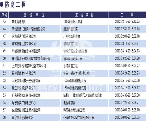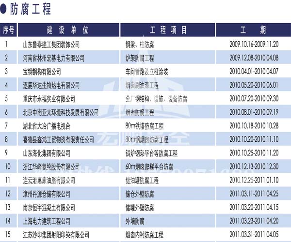 - 宏順建設(shè)核心技術(shù) 宏順建設(shè)專(zhuān)業(yè)防腐各種水塔防腐,儲(chǔ)油罐防腐,管道防腐,吊機(jī)防腐,龍門(mén)吊防腐,水泥筒倉(cāng)防腐工程,有多年的成功經(jīng)驗(yàn),施工業(yè)績(jī)遍布全國(guó)各地... 了解詳情